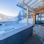 Willa Chalet Bavaria dysponuje tarasem z widokiem na górę oraz basenem.